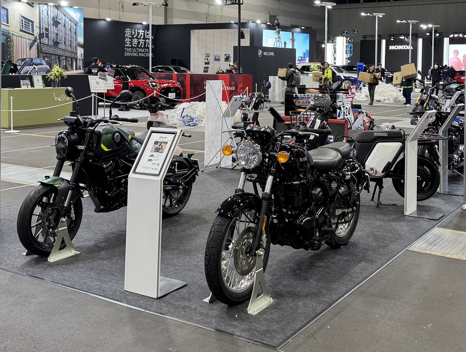 ベネリモーターサイクルは1911年イタリア創業のブランド。プロトでは2021年より正規輸入を開始しました。展示は人気モデル「インペリアーレ400」(左)と「レオンチーノ250」を展示。