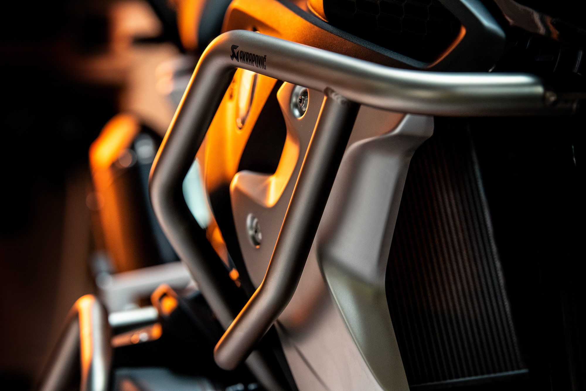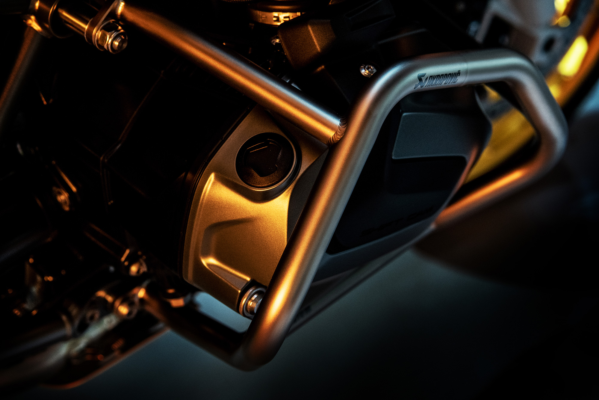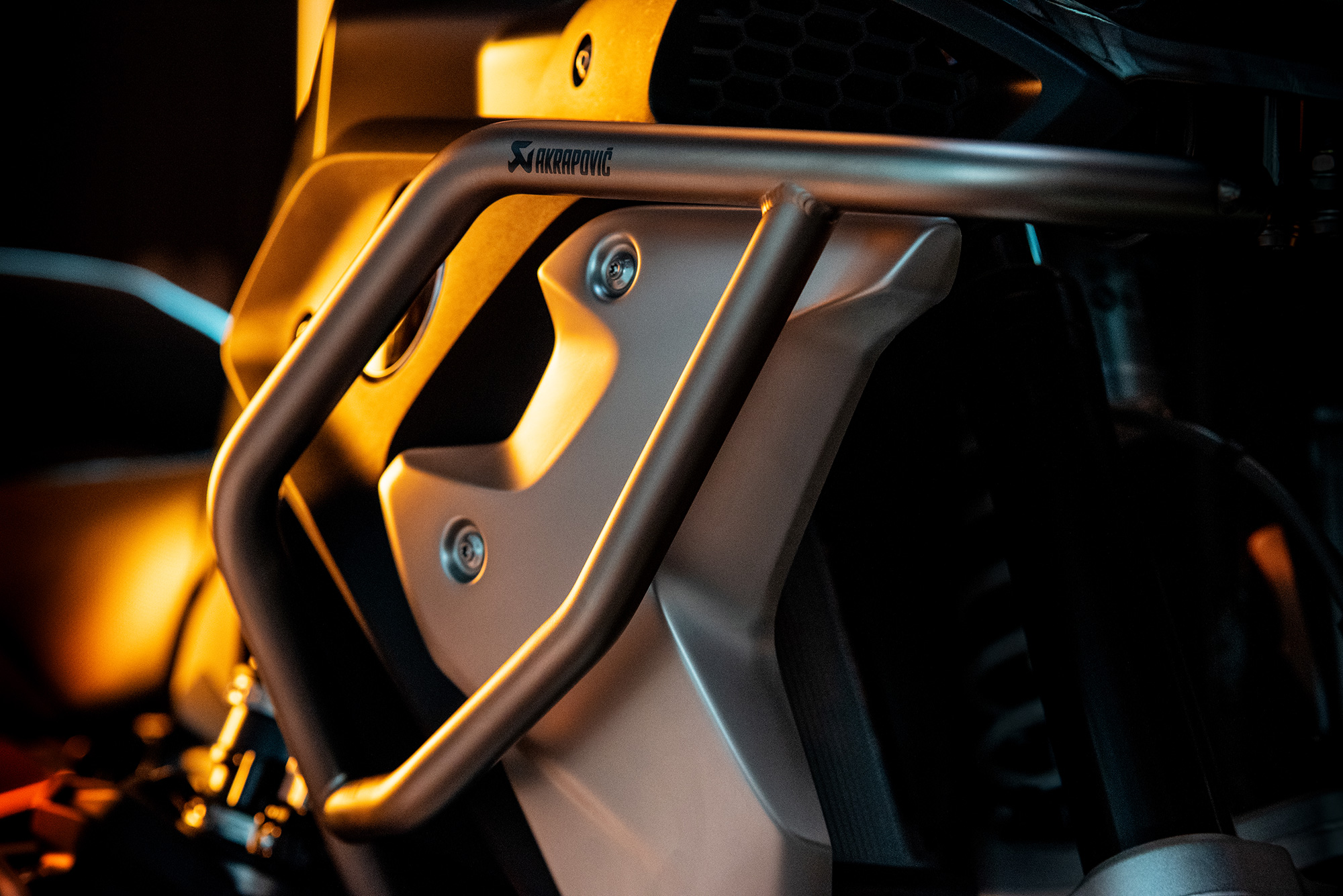 軽量で頑丈なチタンを採用し、バイクの操縦性を損なうことなく、エンジンをガード。