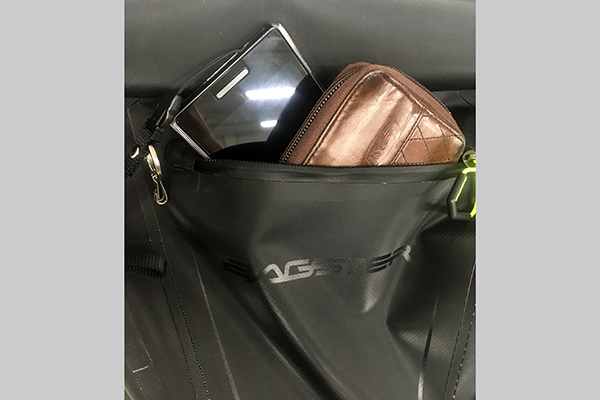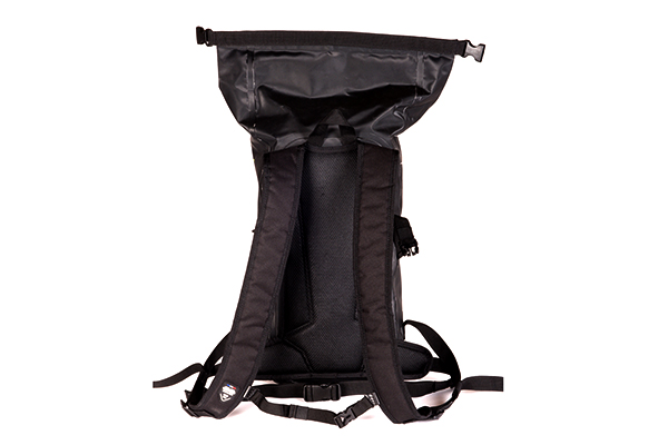 フェンダーレス車両の場合、後輪の泥ハネでリュックがドロドロになってしまいますが、WP20なら中まで染み込まず拭き上げることもできます。
