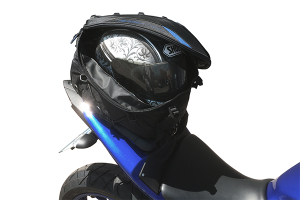 最大拡張時はフルフェイスヘルメットを1個収納できるほどになります。