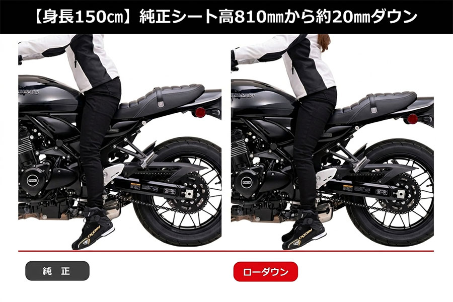 車高を下げて足つき性を改善し、停車時や乗降時の不安を解決する、EFFEX ローダウンキット