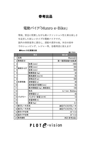 1. 電動バイク「Munro e-Bike」 ひときわ目をひくクラシックなスタイルが特徴。環境、安全に配慮しながら高いファッション性と乗る楽しさを追求した新しいタイプの電動モーターサイクルです。