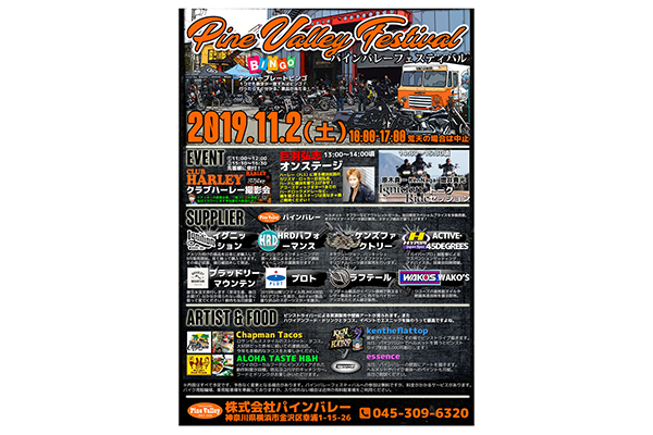 その他にも、有名ビルダーによるトークショーやロックミュージシャンによるステージパフォーマンス、豪華賞品が当たる外れナシのビンゴ大会、バイクイベントには欠かせないキッチンカー、ピンストライプ、アウトレットセールなど盛りだくさんの内容で一日楽しめること間違いなし!