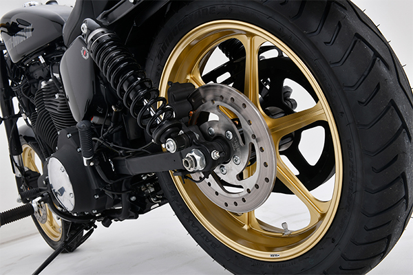 デモバイクに装着されているBG6アルミ鍛造ホイールは、純正ホイールから30%以上の軽量化を実現した超軽量ホイールです。