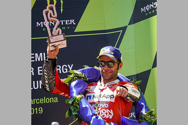 カタルーニャGPはスタート開始から、ホルヘ・ロレンソ選手を起因とする多重クラッシュで上位陣のライダーの多くが転倒、リタイヤとなる波乱のレース展開となりましてチームメイトのアンドレア・ドヴィツィオーゾ選手もロレンソ選手の転倒に巻き込まれ序盤にリタイヤしてしまった為、決勝では最上位のドカティユーザーとなりました。