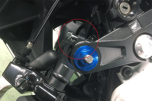トップブリッジのクランプボルトと共締めすることで簡単に装着が可能です。