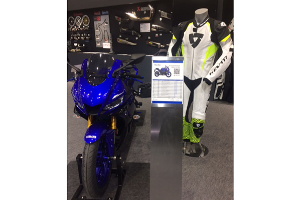プロトブースに展示した新型 ヤマハYZF-R25 2019年モデルに装着したアクラポヴィッチですが、