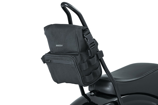 ハイライザーとファットテーパーバーを装着した、今流行りのハイスピードクルーザーカスタムのCLUBスタイルにピッタリの小形状なバリオバッグがリリースされました。