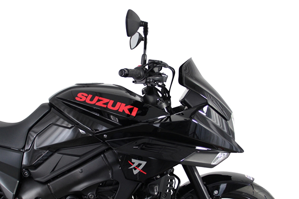 KATANA用に採用されたスクリーンフォルムは「スクリーンスポイラー」となりまして、スクリーンエンドの小さく跳ね上がったスポイラーが正面から来た空気を上部へ送り、体への抵抗を軽減する設計となっております。