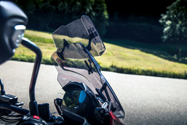 スクリーンエンドに独自の可変フラップを持ち、角度、高さを6段階に調節可能な【ヴァリオツーリング】