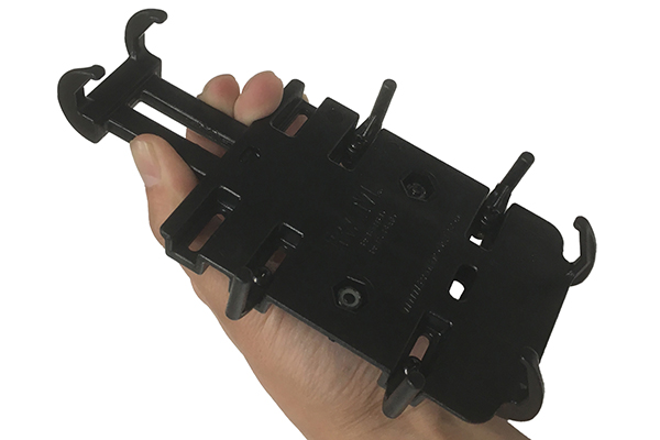 上下のツメの間にバネが内蔵されておりスマートフォンをしっかりホールド。左右のツメはスマートフォンが横にズレるのを防止。ラバーキャップ同梱なので隙間が生じる場合は調節が可能です。