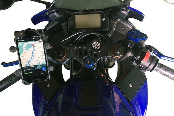 左側にセットされるのでスマートフォン装着時でもメーター視認性が確保されております。