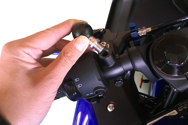 ハンドルスイッチ部の穴埋めキャップを外すと出現する未使用10mm穴にボールマウントパーツが適合しました。