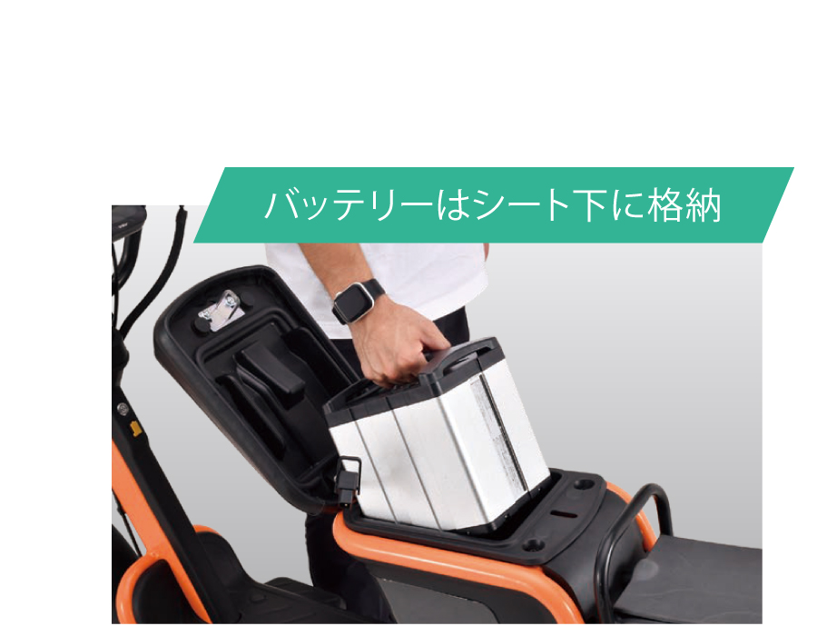 *一充電走行距離は30km/h定地走行、乗員50kg、バッテリー新品、気温15℃、無風の条件下、ECOモードでの当社テスト数値です。お客様の使用環境(気象、渋滞等)や運転方法、車両状態(装備、仕様)や整備状態などの諸条件により異なります。